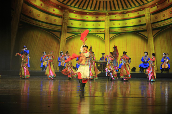 作為蒙古民族歌舞和民俗風(fēng)情最具代表性的經(jīng)典節(jié)目,《鄂爾多斯婚禮》已風(fēng)靡草原,享譽(yù)國內(nèi)外。那動聽悠揚(yáng)的歌曲,優(yōu)美豪放的舞姿,華麗獨(dú)特的服飾,特別是那貫穿其中的鄂爾多斯蒙古族民間婚禮儀式,情節(jié)曲折,情思深幽,再現(xiàn)草原久遠(yuǎn)而優(yōu)美的傳統(tǒng),表現(xiàn)了鄂爾多斯蒙古族人民對生活的熾熱情感和豪爽善良的性格,反響熱烈,久演不衰。