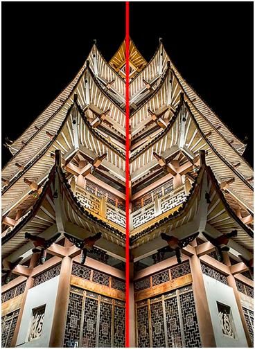 對稱法構(gòu)圖,就是中軸對稱,分為縱軸對稱和橫軸對稱,把整個畫面進(jìn)行平分,帶來視覺的平衡,這種對稱法構(gòu)圖主要是用在一些很對稱的題材上,比如建筑類題材上用的要多一些。