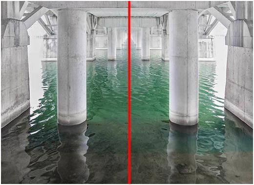 除了縱向?qū)ΨQ,還有水平對稱。水平對稱,一般適合拍攝上下對稱的題材,比如說水面的倒影。在太陽還沒出來的時候,已經(jīng)有亮光的時候,天空呈現(xiàn)出一種藍(lán)調(diào),水面又沒有高光,一切都是那么的寧靜,因為藍(lán)色是讓人很安靜的一種顏色,很舒服。如果你看到了這時候水面的景色,倒影還不錯的話,不妨采用這種方式。