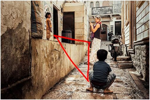 所以,畫面中的三角形關(guān)系安排是否得當(dāng),對于畫面的平衡和協(xié)調(diào)是非常重要。安排得當(dāng),畫面會看起來很舒服,主次關(guān)系、呼應(yīng)關(guān)系也非常清晰。