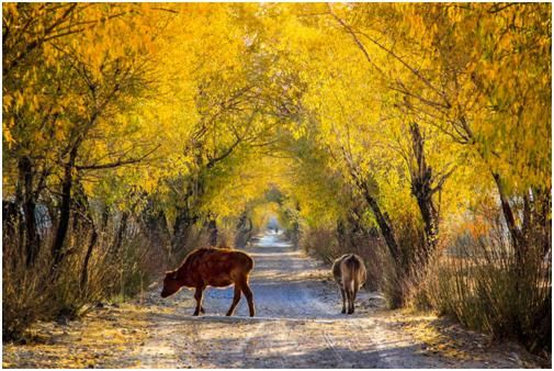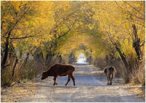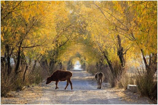 第二點(diǎn),拍攝時機(jī)的把握上還是差了一點(diǎn),應(yīng)該在牛走到比較亮的地方,才去拍攝,這樣主體會亮一些,在晨光的照耀下,金黃色的毛色也會更醒目。
