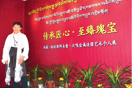 2016年9月2日,以“傳承匠心·至臻瑰寶”為主題的朵普·次嘎金屬造像藝術(shù)個(gè)人展在西藏博物館開(kāi)幕。 圖為朵普·次嘎的紀(jì)念照片。