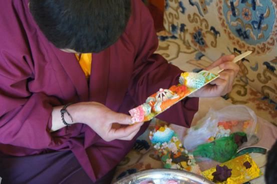 酥油花是藏族傳統(tǒng)工藝的古老藝術(shù)之一,又稱油塑藝術(shù),是以酥油為材料而制成的特殊雕塑作品。每年冬天,由手工藝人們將酥油切成薄片,加上冷水,攪拌均勻,加入各種礦物顏料后雕塑而成。每年藏歷新年的一月十五日都會舉行盛大的酥油花藝術(shù)作品展覽活動。