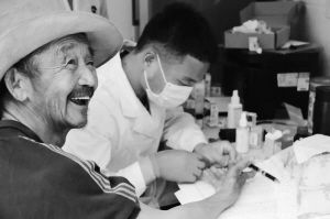 中央民族大學(xué)藥學(xué)院師生為北京市懷柔區(qū)老溝門(mén)村村民開(kāi)展義診活動(dòng)。