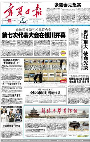 《寧夏日?qǐng)?bào)》是寧夏回族自治區(qū)黨委機(jī)關(guān)報(bào),是寧夏地區(qū)最具權(quán)威性的報(bào)紙。信息量大、覆蓋面廣、可讀性強(qiáng)是其主要特色。