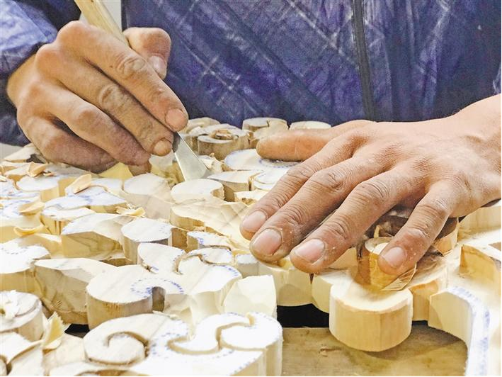 經拉巴次仁之手刻出的作品干凈利落,不多一分也沒少一處,極大地表現出木雕藝術的魅力和風格。然而,要完成一件長約50厘米、寬約15厘米的建筑裝飾品,就需要花費一天半的功夫。