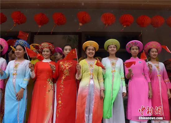 2018年12月,廣西東興市的京族群眾慶祝廣西壯族自治區(qū)成立60周年。中新社記者 侯宇 攝