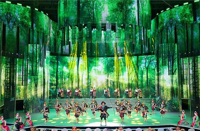 在舞美上,晚會傾力打造中華文化概念,突出鑄牢中華民族共同體意識,建構(gòu)熱烈祥和的觀演環(huán)境、身臨其境的現(xiàn)場體驗、自然流暢的互動場景,以更炫麗、更時尚、更具生命力的節(jié)目內(nèi)容和形式,為觀眾提供技術(shù)與藝術(shù)完美結(jié)合的視聽盛宴。主創(chuàng)人員別具匠心地把舞臺設(shè)計成一個具有民族特色的大客廳,寓意各族兄弟姐妹溫暖團聚,營造既有民族特色又有時代氣息的視覺空間。