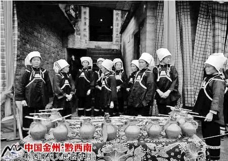 ——禮俗歌。內(nèi)容豐富多彩,節(jié)日或喜慶之日,主客于席上互相吟唱,以抒情懷。以席局《酒歌》為例。可分《問(wèn)酒歌》、《謝酒歌》、《敬酒歌》等。這些歌,無(wú)一不表現(xiàn)出布依族的謙遜、熱情、直爽、好客的美德。禮俗歌還包括敬老人歌、贊媳婦歌、進(jìn)寨歌、出寨歌、宵夜歌等。這些歌無(wú)不反映出布依族尊老愛(ài)幼的傳統(tǒng)美德。特別值得一提的是布依族青年男女經(jīng)過(guò)“浪哨“擇愛(ài)后,《問(wèn)媒歌》、《問(wèn)八字歌》、《說(shuō)親歌》、《打親家歌》等就詳盡記述了成親過(guò)程,很有研究?jī)r(jià)值。接下來(lái)還有《接親歌》、《送親歌》、《擺酒歌》等描述主客的喜悅心情和結(jié)親的歡樂(lè)氣氛。