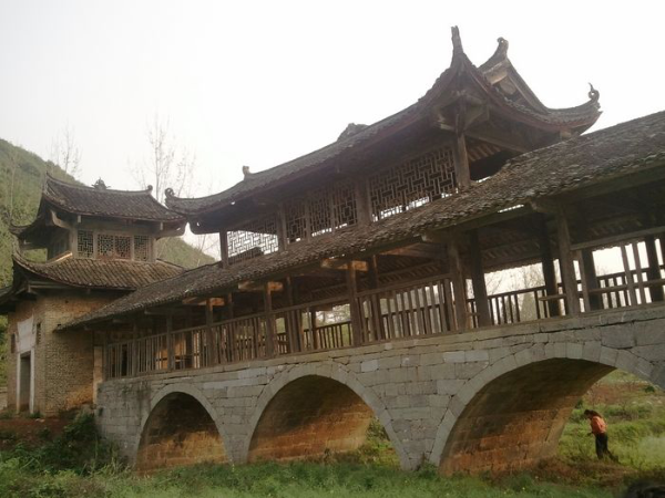瑤族風(fēng)雨橋,又被稱之為“涼橋”或“風(fēng)水橋”。除木橋外,大多是在石拱橋上加蓋橋廊、橋亭和在橋頭的橋臺(tái)上建閣樓,穿斗式木構(gòu)架,二層檐或三層檐,有的四層檐,通高在9米~10米間。風(fēng)雨橋不僅是路人避雨之處,也是瑤族男女青年談情說愛的約會(huì)場所。廣西瑤族風(fēng)雨橋主要集中在富川瑤族自治縣和恭城瑤族自治縣。富川縣保存至今的古代瑤族風(fēng)雨橋有18座,其中著名的有迥瀾橋(建于明萬歷年間),青龍橋(與前者同時(shí)期修建),以及福壽橋、高橋、鳳溪新橋、皇侯泉橋、東轅橋、鸕鶿塘瀾通橋、龍歸橋、興隆橋等。