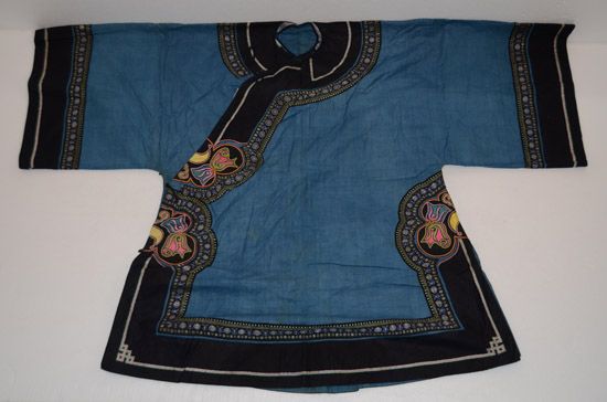 分布在臺江、施秉、鎮(zhèn)遠(yuǎn)三縣交界地一帶苗族村寨,以臺江施洞苗族為代表。該服裝上衣為家織布右衽衣,刺繡主要在前襟、衣領(lǐng)、肩袖部分,以黔東南苗族特有的破線繡為主,所繡圖案主要為龍紋,工藝精美,具有民族特點。