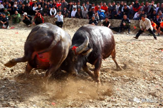 ▲ 苗族人民愛(ài)斗牛,以水牛相斗,并不是戲牛取樂(lè),而是以斗牛的方式,展示苗家敬牛愛(ài)牛拜牛的特性。