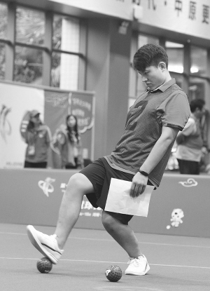 在分組循環(huán)賽女子單蹴中,河北隊(duì)員趙佳美遇到了強(qiáng)勁對(duì)手——福建隊(duì)男女混合雙蹴一等獎(jiǎng)得主鐘金雪。趙佳美發(fā)揮得不錯(cuò),雙方比分始終咬得很死。鐘金雪起腳擊球干凈利落,在比分上形成壓制。