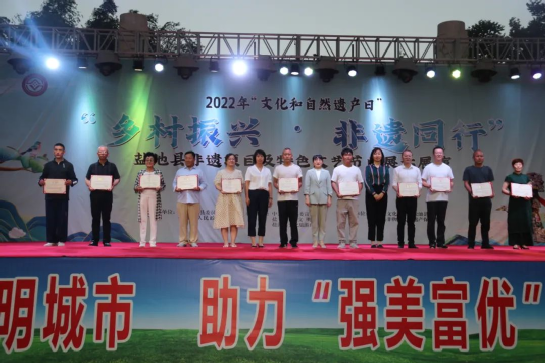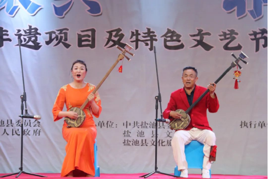 演出開(kāi)始前公布了第四批縣級(jí)非物質(zhì)文化遺產(chǎn)代表性項(xiàng)目及第三批鹽池縣級(jí)非物質(zhì)文化遺產(chǎn)代表性傳承人名錄,并為代表性項(xiàng)目和傳承人頒發(fā)牌匾及證書(shū)。
