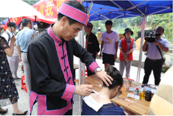 本次活動以2020年“文化和自然遺產日”的“非遺傳承,健康生活”為主題,重點圍繞傳統(tǒng)醫(yī)藥項目保護,普及“非遺”知識和健康生活理念,營造全社會共同參與、關注和保護傳承優(yōu)秀傳統(tǒng)文化濃厚氛圍而開展。邀請十位瑤醫(yī)藥傳承人帶領40多位瑤醫(yī)弟子各顯神通,在現(xiàn)場開展非遺項目義診活動,為游客免費問疹,展示泡藥療法、針灸療法、燈草療法、坐浴療法、拉伽通灸療法等10種技法?,幷锩恳粦羧思夷贸瞿檬纸^活在自家進行現(xiàn)場展示,黃泥鼓制作、樹葉豆腐制作、瑤族織繡技藝、釀酒技藝、舂糍粑、原創(chuàng)歌曲展示等,豐富多彩的各種技藝,讓游客流連忘返。