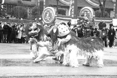 在湖南衡陽(yáng)舉辦的南岳龍獅爭(zhēng)霸賽現(xiàn)場(chǎng)的舞獅表演。賈 艷 攝