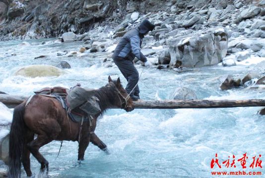 居馬泰·俄白克行走在獨木橋上(劉靈波  攝影)