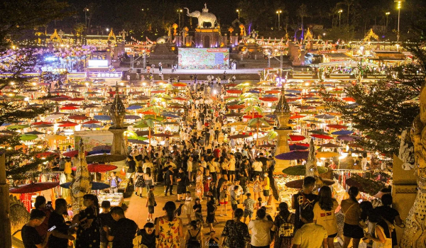 夜幕降臨,告莊西雙景星光夜市上千個特色攤位紛紛開始營業(yè),與壯美的瀾滄江江景交相輝映,成為西雙版納的新...