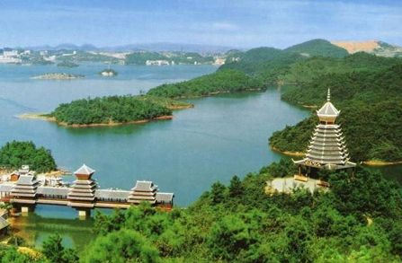 貴州國家級風(fēng)景名勝區(qū)之一的紅楓湖風(fēng)景名勝區(qū)是連貴州本地人都十分愛去游覽的地方,它不僅僅因它的湖泊面積大更因它的湖上星羅棋步的小島而吸引著本地的外地的游客。它的水域總面積為57.2平方公里,蓄水量可達(dá)6億立方米,為貴州高原人造湖之最,據(jù)專家考證出來的數(shù)據(jù)顯示,紅楓湖比北京的十三陵水庫大12倍,相當(dāng)于6個(gè)杭州西湖。
