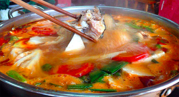 貴州是一個多民族地區(qū),擅長制酸,亦喜食酸食。酸湯具有開胃健脾之功效。在貴州眾多酸湯中,以苗家酸湯最為著名,其與眾不同的地方是酸香豐富,是苗族傳統(tǒng)的風味名菜。苗族同胞居住在大山里,山高路遠,幾乎家家都有酸壇,少的一兩個,多的好幾個,甚至幾十個。苗家釀制酸湯取自高山上的泉水和自種的香糯釀制而成,味型獨特、酸鮮可口。