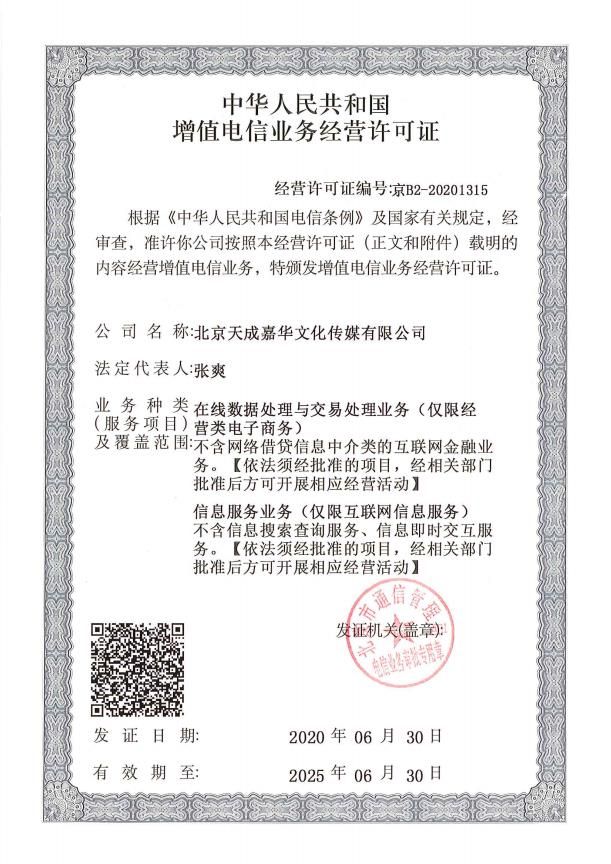 增值電信業(yè)務經營許可證B2-20201315