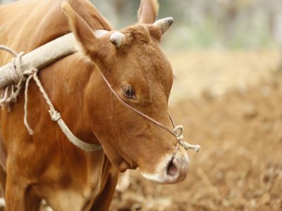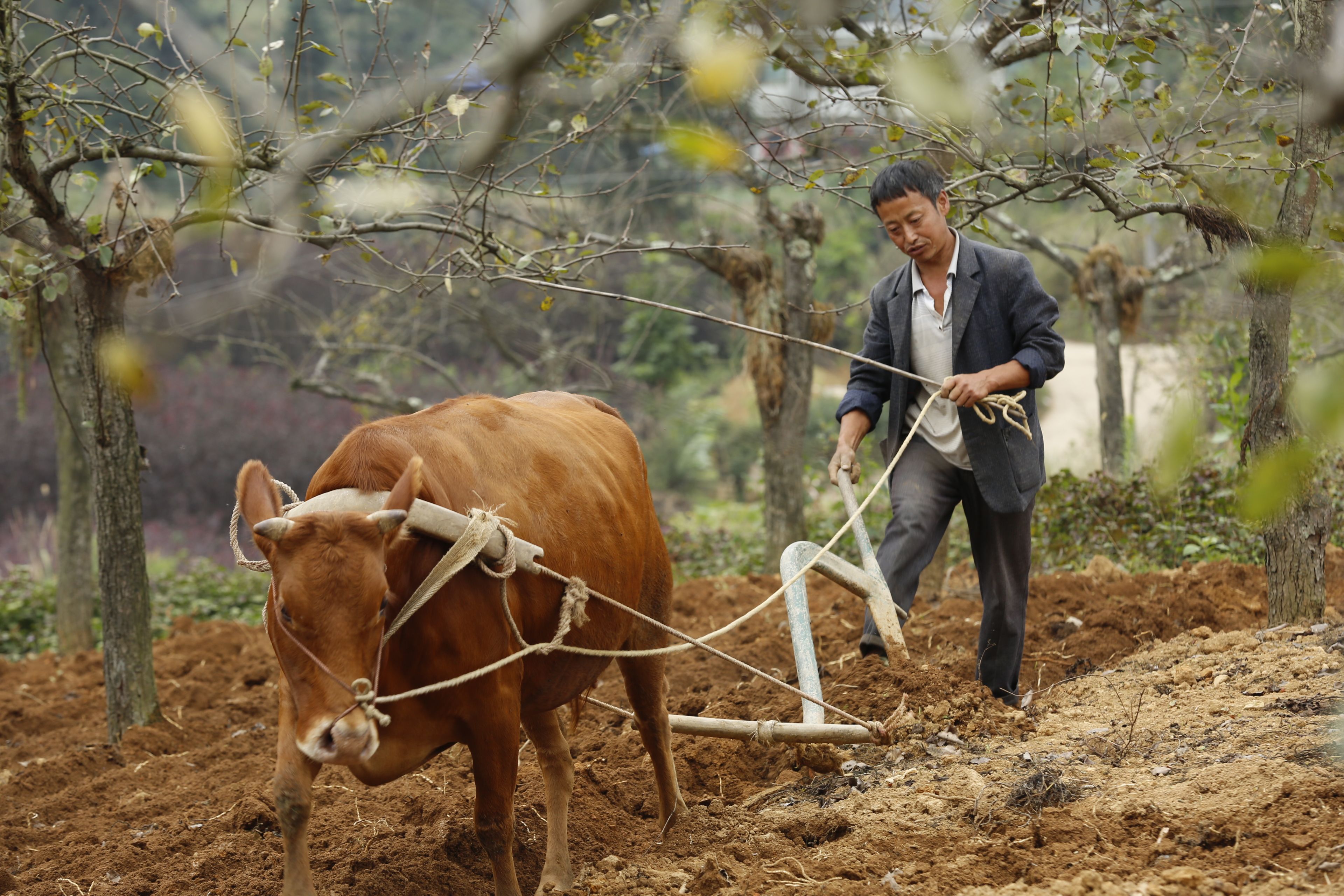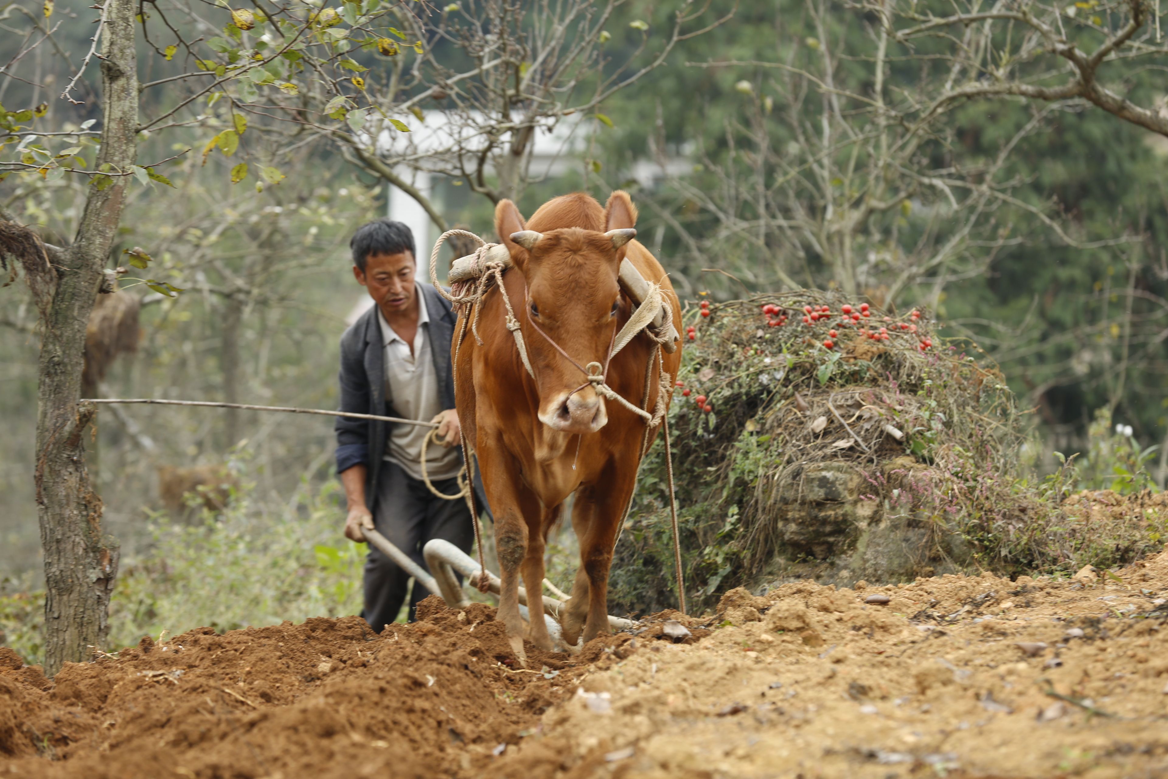圖片說(shuō)明:貴州貴陽(yáng)苗族農(nóng)作物種植-牛耕田
